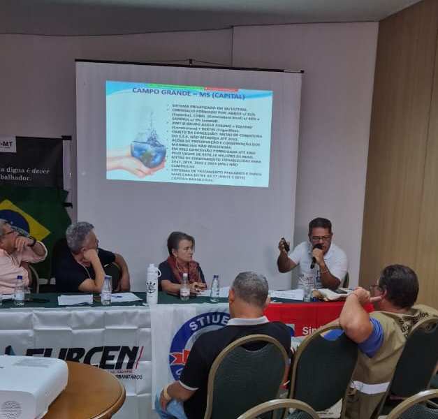 Durante sua intervenção, Lázaro apresentou a experiência de Campo Grande (MS) após a privatização do saneamento, denunciando o aumento expressivo das tarifas praticadas pela Águas Guariroba em relação à estatal Sanesul.